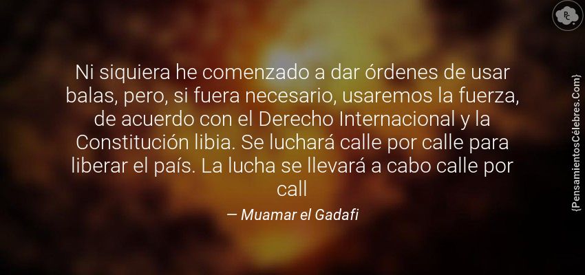 "Ni siquiera he comenzado a dar órdenes de usar balas, pero, si fuera necesario, usaremos la fuerza, de acuerdo con el Derecho Internacional y la Constitución libia. Se luchará calle por calle para liberar el país. La lucha se llevará a cabo calle por call"