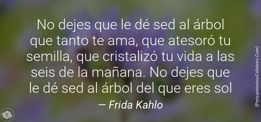 "No dejes que le dé sed al árbol que tanto te ama, que atesoró tu semilla, que cristalizó tu vida a las seis de la mañana. No dejes que le dé sed al árbol del que eres sol"