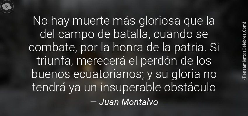 "No hay muerte más gloriosa que la del campo de batalla, cuando se combate, por la honra de la patria. Si triunfa, merecerá el perdón de los buenos ecuatorianos; y su gloria no tendrá ya un insuperable obstáculo"