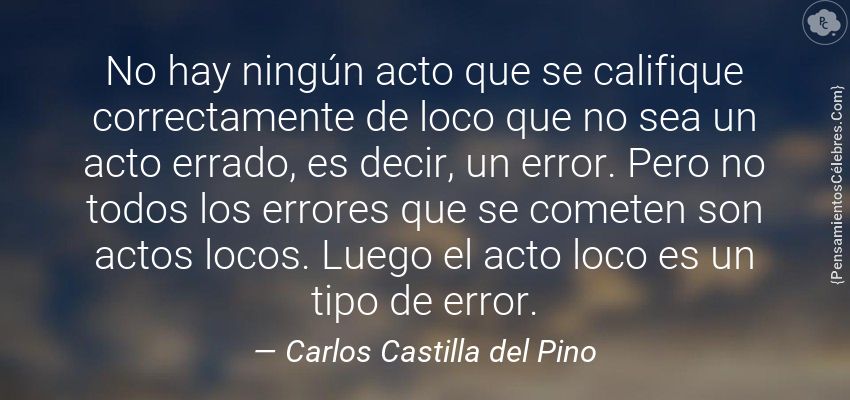 "No hay ningún acto que se califique correctamente de loco que no sea un acto errado, es decir, un error. Pero no todos los errores que se cometen son actos locos. Luego el acto loco es un tipo de error."