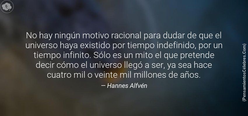 "No hay ningún motivo racional para dudar de que el universo haya existido por tiempo indefinido, por un tiempo infinito. Sólo es un mito el que pretende decir cómo el universo llegó a ser, ya sea hace cuatro mil o veinte mil millones de años."