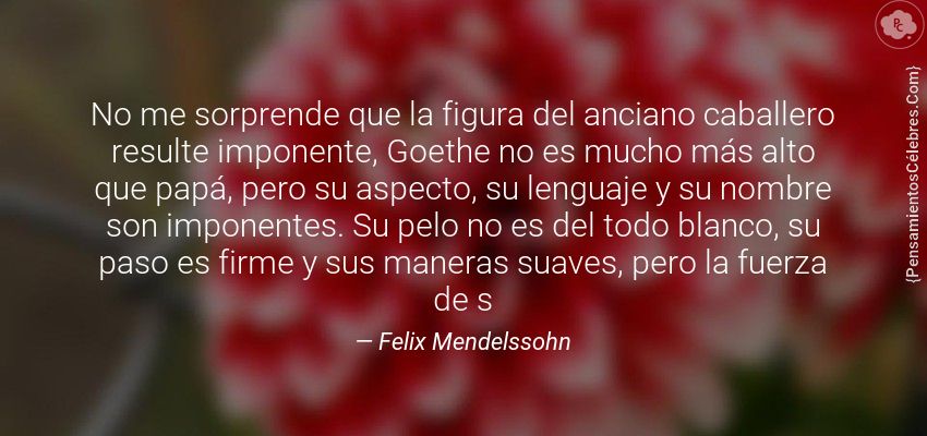 "No me sorprende que la figura del anciano caballero resulte imponente, Goethe no es mucho más alto que papá, pero su aspecto, su lenguaje y su nombre son imponentes. Su pelo no es del todo blanco, su paso es firme y sus maneras suaves, pero la fuerza de s"