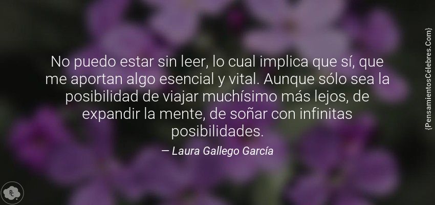 "No puedo estar sin leer, lo cual implica que sí, que me aportan algo esencial y vital. Aunque sólo sea la posibilidad de viajar muchísimo más lejos, de expandir la mente, de soñar con infinitas posibilidades."