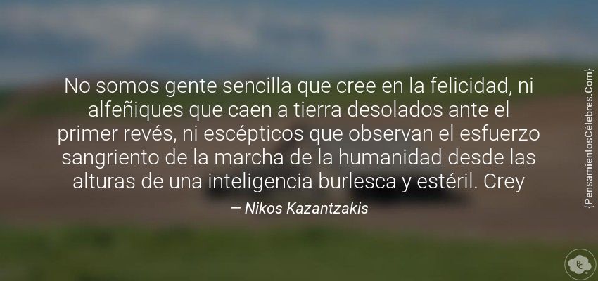 "No somos gente sencilla que cree en la felicidad, ni alfeñiques que caen a tierra desolados ante el primer revés, ni escépticos que observan el esfuerzo sangriento de la marcha de la humanidad desde las alturas de una inteligencia burlesca y estéril. Crey"