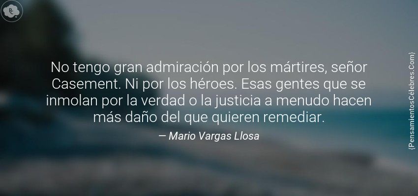 "No tengo gran admiración por los mártires, señor Casement. Ni por los héroes. Esas gentes que se inmolan por la verdad o la justicia a menudo hacen más daño del que quieren remediar."