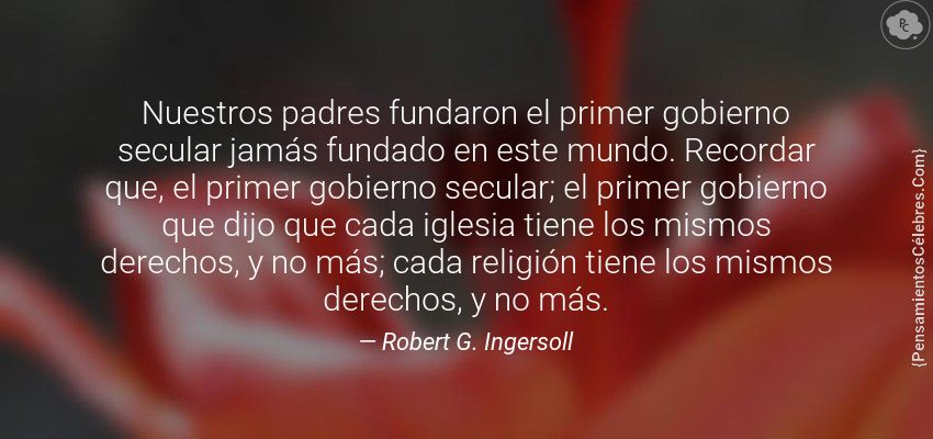 "Nuestros padres fundaron el primer gobierno secular jamás fundado en este mundo. Recordar que, el primer gobierno secular; el primer gobierno que dijo que cada iglesia tiene los mismos derechos, y no más; cada religión tiene los mismos derechos, y no más."