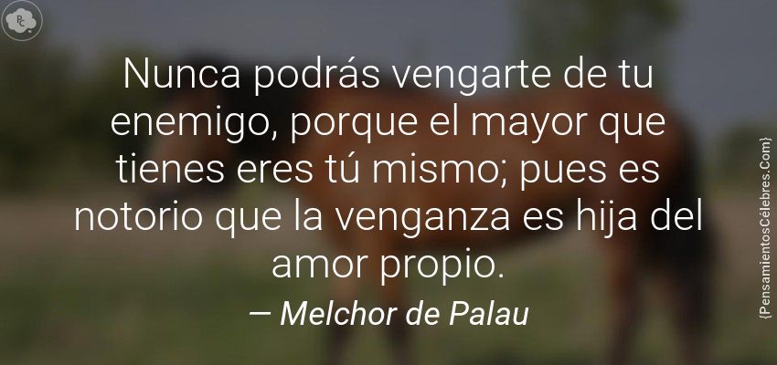 "Nunca podrás vengarte de tu enemigo, porque el mayor que tienes eres tú mismo; pues es notorio que la venganza es hija del amor propio."