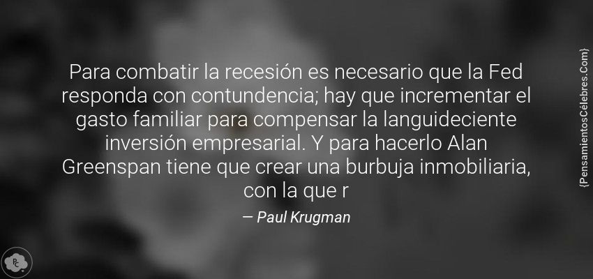 "Para combatir la recesión es necesario que la Fed responda con contundencia; hay que incrementar el gasto familiar para compensar la languideciente inversión empresarial. Y para hacerlo Alan Greenspan tiene que crear una burbuja inmobiliaria, con la que r"