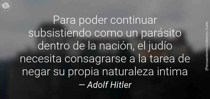 "Para poder continuar subsistiendo como un parásito dentro de la nación, el judío necesita consagrarse a la tarea de negar su propia naturaleza intima"