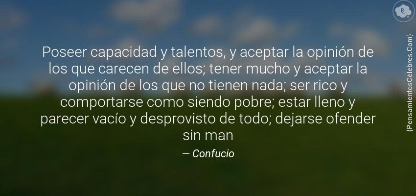 "Poseer capacidad y talentos, y aceptar la opinión de los que carecen de ellos; tener mucho y aceptar la opinión de los que no tienen nada; ser rico y comportarse como siendo pobre; estar lleno y parecer vacío y desprovisto de todo; dejarse ofender sin man"