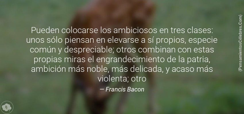 "Pueden colocarse los ambiciosos en tres clases: unos sólo piensan en elevarse a sí propios, especie común y despreciable; otros combinan con estas propias miras el engrandecimiento de la patria, ambición más noble, más delicada, y acaso más violenta; otro"