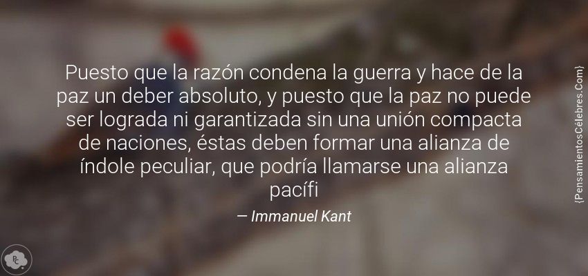 "Puesto que la razón condena la guerra y hace de la paz un deber absoluto, y puesto que la paz no puede ser lograda ni garantizada sin una unión compacta de naciones, éstas deben formar una alianza de índole peculiar, que podría llamarse una alianza pacífi"