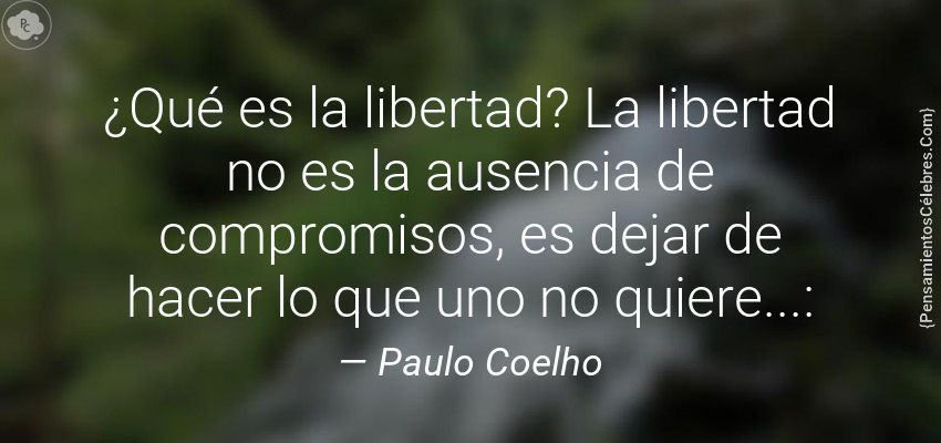 "¿Qué es la libertad? La libertad no es la ausencia de compromisos, es dejar de hacer lo que uno no quiere...:"
