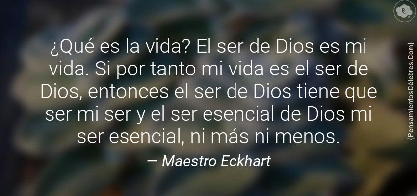 "¿Qué es la vida? El ser de Dios es mi vida. Si por tanto mi vida es el ser de Dios, entonces el ser de Dios tiene que ser mi ser y el ser esencial de Dios mi ser esencial, ni más ni menos."
