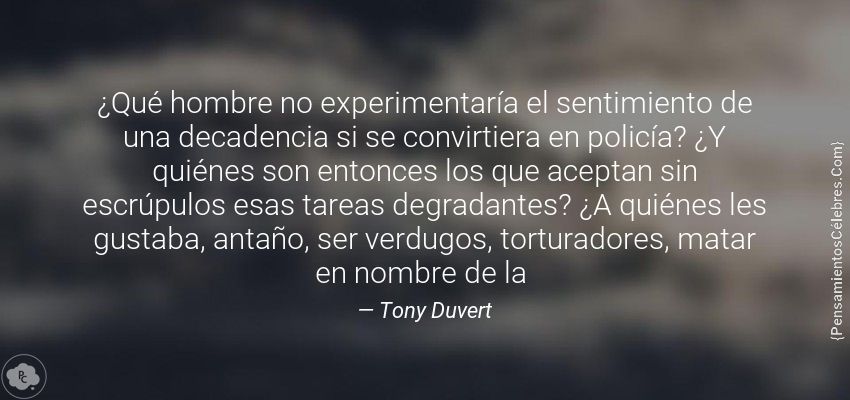 "¿Qué hombre no experimentaría el sentimiento de una decadencia si se convirtiera en policía? ¿Y quiénes son entonces los que aceptan sin escrúpulos esas tareas degradantes? ¿A quiénes les gustaba, antaño, ser verdugos, torturadores, matar en nombre de la "