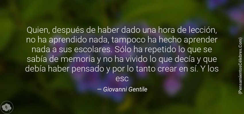 "Quien, después de haber dado una hora de lección, no ha aprendido nada, tampoco ha hecho aprender nada a sus escolares. Sólo ha repetido lo que se sabía de memoria y no ha vivido lo que decía y que debía haber pensado y por lo tanto crear en sí. Y los esc"