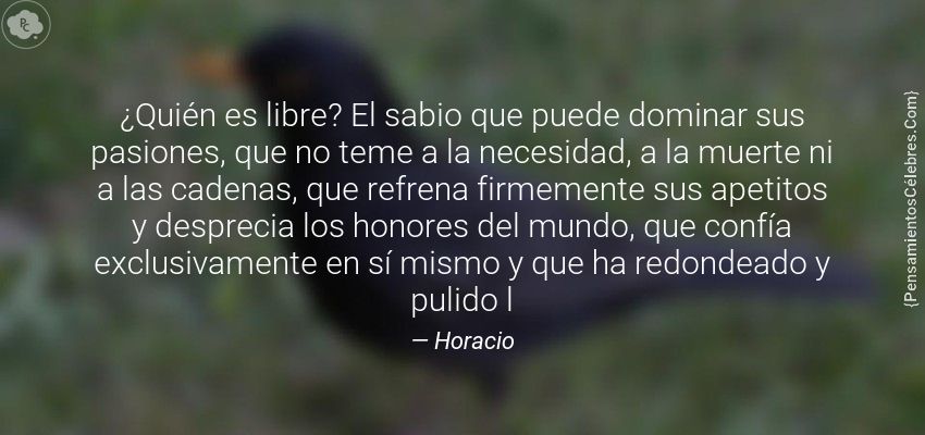 "¿Quién es libre? El sabio que puede dominar sus pasiones, que no teme a la necesidad, a la muerte ni a las cadenas, que refrena firmemente sus apetitos y desprecia los honores del mundo, que confía exclusivamente en sí mismo y que ha redondeado y pulido l"