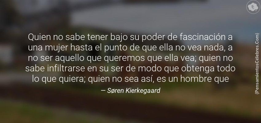 "Quien no sabe tener bajo su poder de fascinación a una mujer hasta el punto de que ella no vea nada, a no ser aquello que queremos que ella vea; quien no sabe infiltrarse en su ser de modo que obtenga todo lo que quiera; quien no sea así, es un hombre que"