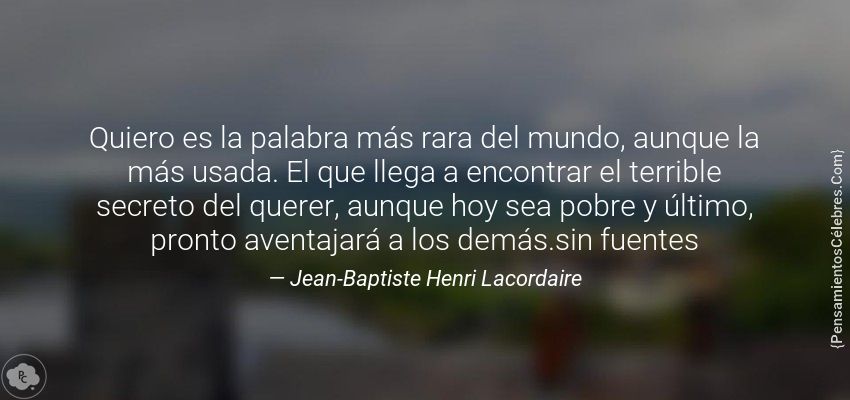 "Quiero es la palabra más rara del mundo, aunque la más usada. El que llega a encontrar el terrible secreto del querer, aunque hoy sea pobre y último, pronto aventajará a los demás.sin fuentes"