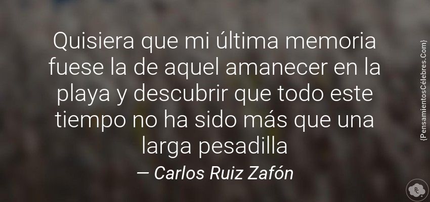 "Quisiera que mi última memoria fuese la de aquel amanecer en la playa y descubrir que todo este tiempo no ha sido más que una larga pesadilla"