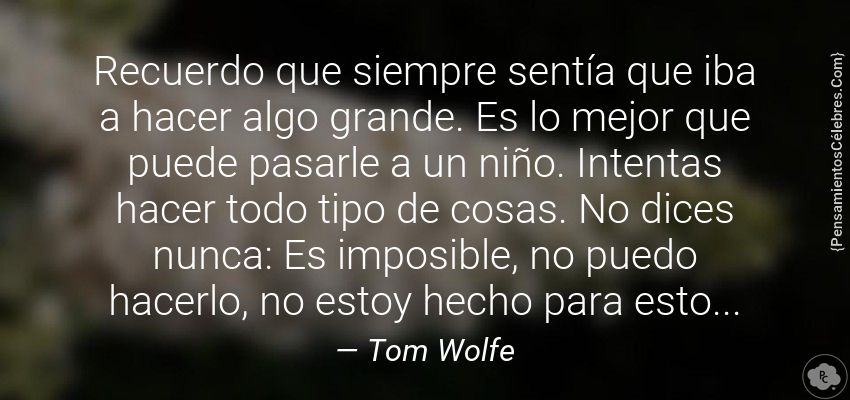 "Recuerdo que siempre sentía que iba a hacer algo grande. Es lo mejor que puede pasarle a un niño. Intentas hacer todo tipo de cosas. No dices nunca: Es imposible, no puedo hacerlo, no estoy hecho para esto..."