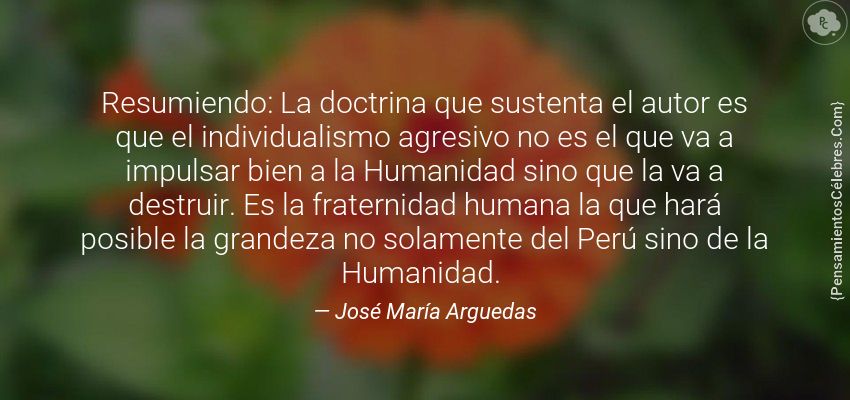 "Resumiendo: La doctrina que sustenta el autor es que el individualismo agresivo no es el que va a impulsar bien a la Humanidad sino que la va a destruir. Es la fraternidad humana la que hará posible la grandeza no solamente del Perú sino de la Humanidad. "