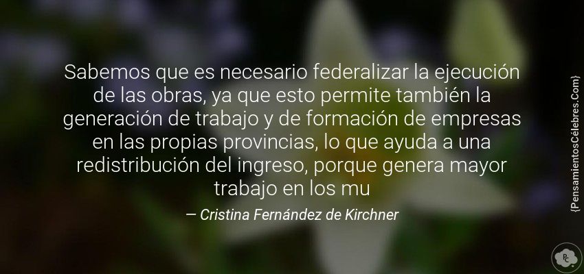 "Sabemos que es necesario federalizar la ejecución de las obras, ya que esto permite también la generación de trabajo y de formación de empresas en las propias provincias, lo que ayuda a una redistribución del ingreso, porque genera mayor trabajo en los mu"