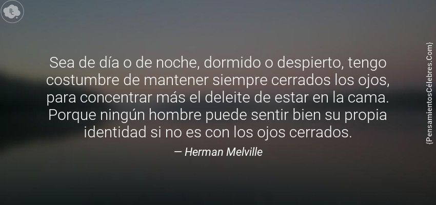 "Sea de día o de noche, dormido o despierto, tengo costumbre de mantener siempre cerrados los ojos, para concentrar más el deleite de estar en la cama. Porque ningún hombre puede sentir bien su propia identidad si no es con los ojos cerrados."