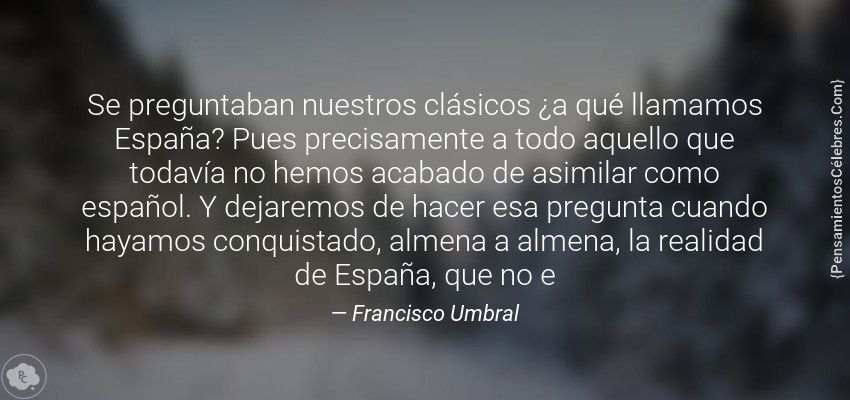 "Se preguntaban nuestros clásicos ¿a qué llamamos España? Pues precisamente a todo aquello que todavía no hemos acabado de asimilar como español. Y dejaremos de hacer esa pregunta cuando hayamos conquistado, almena a almena, la realidad de España, que no e"