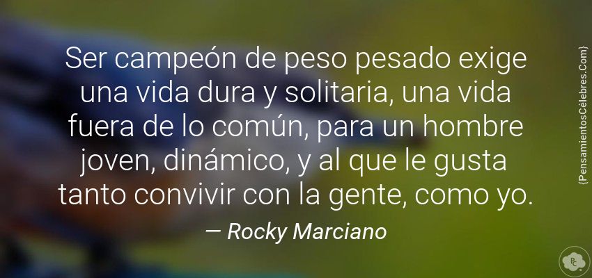 "Ser campeón de peso pesado exige una vida dura y solitaria, una vida fuera de lo común, para un hombre joven, dinámico, y al que le gusta tanto convivir con la gente, como yo."