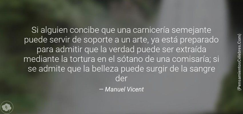 "Si alguien concibe que una carnicería semejante puede servir de soporte a un arte, ya está preparado para admitir que la verdad puede ser extraída mediante la tortura en el sótano de una comisaría; si se admite que la belleza puede surgir de la sangre der"