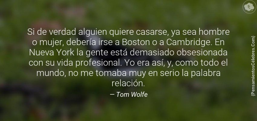 "Si de verdad alguien quiere casarse, ya sea hombre o mujer, debería irse a Boston o a Cambridge. En Nueva York la gente está demasiado obsesionada con su vida profesional. Yo era así, y, como todo el mundo, no me tomaba muy en serio la palabra relación."