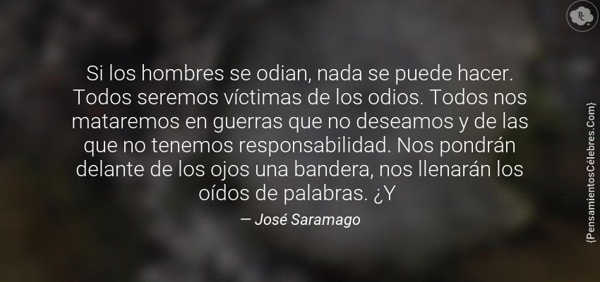 "Si los hombres se odian, nada se puede hacer. Todos seremos víctimas de los odios. Todos nos mataremos en guerras que no deseamos y de las que no tenemos responsabilidad. Nos pondrán delante de los ojos una bandera, nos llenarán los oídos de palabras. ¿Y "