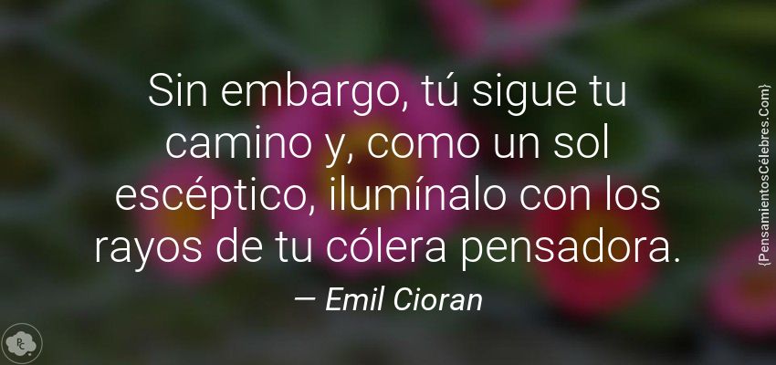 "Sin embargo, tú sigue tu camino y, como un sol escéptico, ilumínalo con los rayos de tu cólera pensadora."