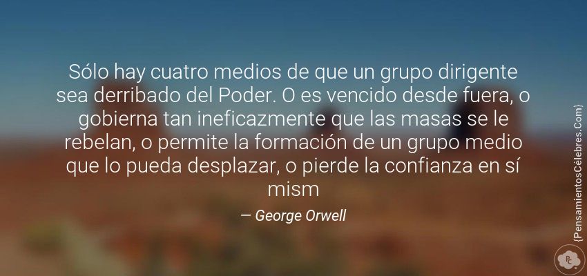 "Sólo hay cuatro medios de que un grupo dirigente sea derribado del Poder. O es vencido desde fuera, o gobierna tan ineficazmente que las masas se le rebelan, o permite la formación de un grupo medio que lo pueda desplazar, o pierde la confianza en sí mism"