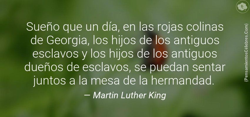 "Sueño que un día, en las rojas colinas de Georgia, los hijos de los antiguos esclavos y los hijos de los antiguos dueños de esclavos, se puedan sentar juntos a la mesa de la hermandad."