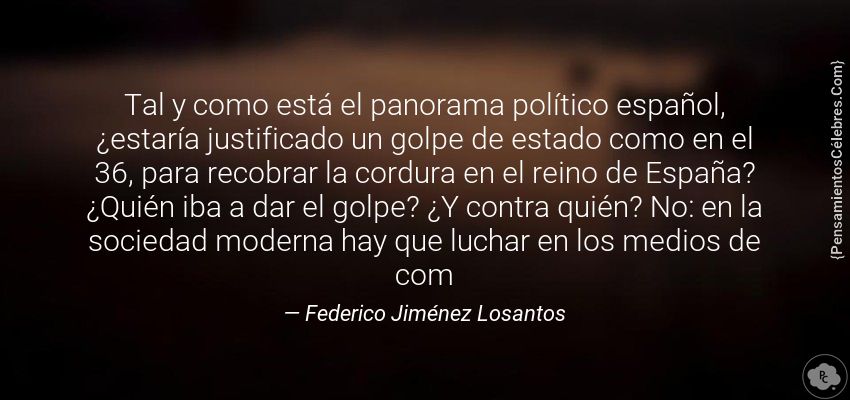 "Tal y como está el panorama político español, ¿estaría justificado un golpe de estado como en el 36, para recobrar la cordura en el reino de España? ¿Quién iba a dar el golpe? ¿Y contra quién? No: en la sociedad moderna hay que luchar en los medios de com"