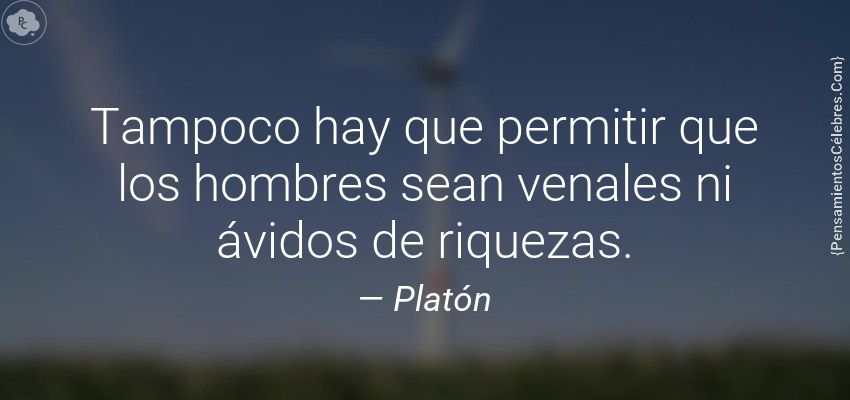 "Tampoco hay que permitir que los hombres sean venales ni ávidos de riquezas."