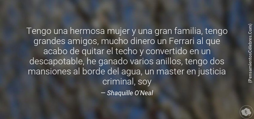 "Tengo una hermosa mujer y una gran familia, tengo grandes amigos, mucho dinero un Ferrari al que acabo de quitar el techo y convertido en un descapotable, he ganado varios anillos, tengo dos mansiones al borde del agua, un master en justicia criminal, soy"