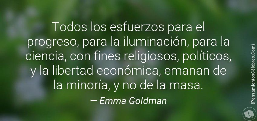"Todos los esfuerzos para el progreso, para la iluminación, para la ciencia, con fines religiosos, políticos, y la libertad económica, emanan de la minoría, y no de la masa."