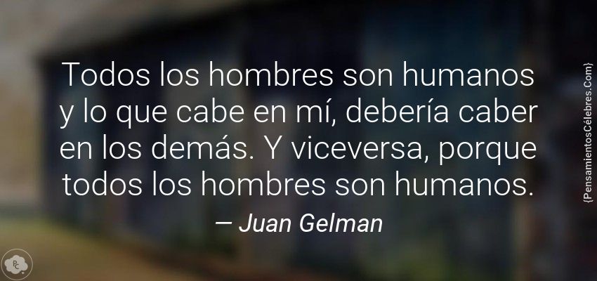 "Todos los hombres son humanos y lo que cabe en mí, debería caber en los demás. Y viceversa, porque todos los hombres son humanos."