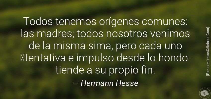 "Todos tenemos orígenes comunes: las madres; todos nosotros venimos de la misma sima, pero cada uno tentativa e impulso desde lo hondo- tiende a su propio fin."