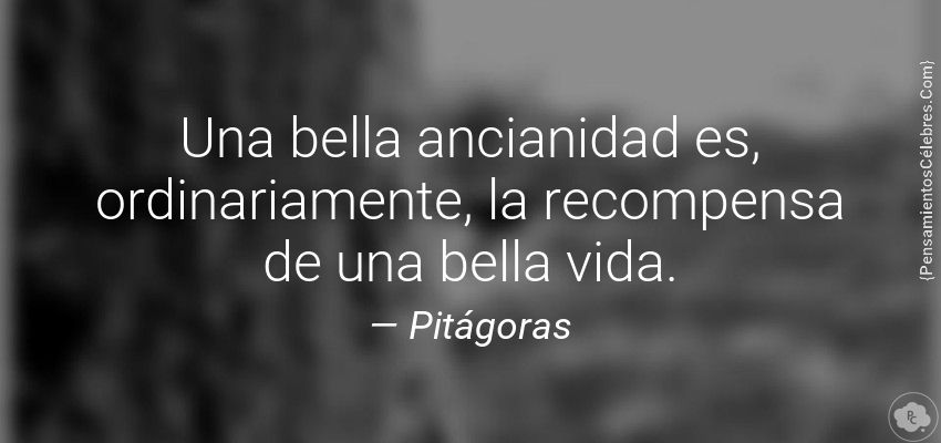"Una bella ancianidad es, ordinariamente, la recompensa de una bella vida."
