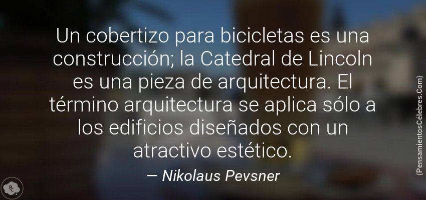 "Un cobertizo para bicicletas es una construcción; la Catedral de Lincoln es una pieza de arquitectura. El término arquitectura se aplica sólo a los edificios diseñados con un atractivo estético."
