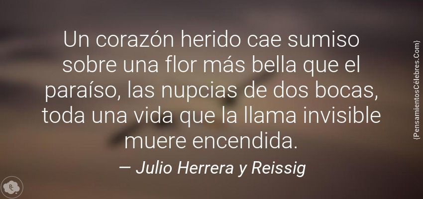 "Un corazón herido cae sumiso sobre una flor más bella que el paraíso, las nupcias de dos bocas, toda una vida que la llama invisible muere encendida."