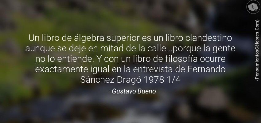 "Un libro de álgebra superior es un libro clandestino aunque se deje en mitad de la calle...porque la gente no lo entiende. Y con un libro de filosofía ocurre exactamente igual en la entrevista de Fernando Sánchez Dragó 1978 1/4"