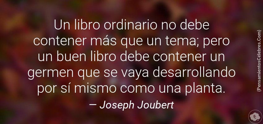"Un libro ordinario no debe contener más que un tema; pero un buen libro debe contener un germen que se vaya desarrollando por sí mismo como una planta."