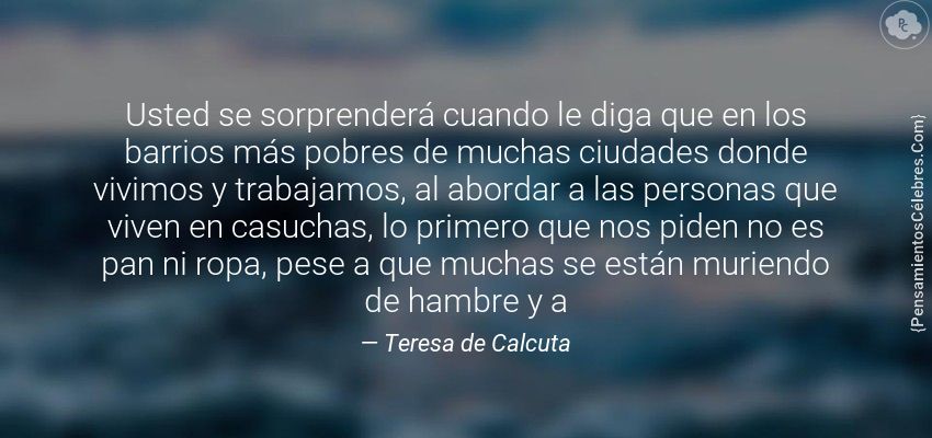 "Usted se sorprenderá cuando le diga que en los barrios más pobres de muchas ciudades donde vivimos y trabajamos, al abordar a las personas que viven en casuchas, lo primero que nos piden no es pan ni ropa, pese a que muchas se están muriendo de hambre y a"