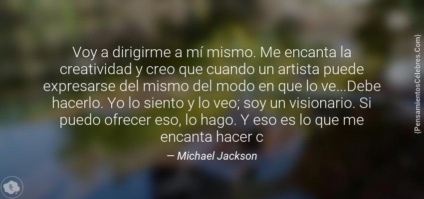 "Voy a dirigirme a mí mismo. Me encanta la creatividad y creo que cuando un artista puede expresarse del mismo del modo en que lo ve...Debe hacerlo. Yo lo siento y lo veo; soy un visionario. Si puedo ofrecer eso, lo hago. Y eso es lo que me encanta hacer c"