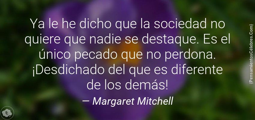 "Ya le he dicho que la sociedad no quiere que nadie se destaque. Es el único pecado que no perdona. ¡Desdichado del que es diferente de los demás!"